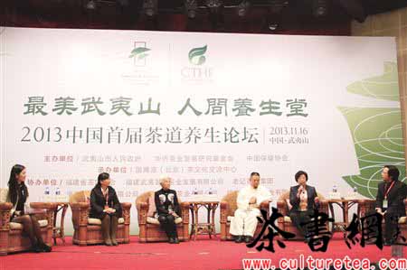 为弘扬中国茶道精神,传承中华养生文化,“2013中国首届茶道养生论坛”于2013年11月16日在福建省武夷山市举办。本次论坛作为第七届海峡两岸茶业博览会配套活动之一,由武夷山市人民政府、华侨茶业发展研究基金会、中国保健协会联合主办,相关政府领导、国内知名茶道及香道养生专家学者、茶与养生爱好者、新闻媒体等300多人出席,就茶道、香道文化对养生保健产业的推动方面进行深入讨论。