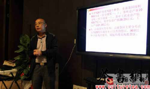 第一天的课程在东道主陆洪标同学的公司昆明大诚合润天香工贸有限公司的会议室进行。由中国茶叶流通协会副秘书长,云南省茶叶协会秘书长,方可先生以“悠悠茶马古道,浓浓普洱茶情之奇妙的云南茶”为主题为同学们全面介绍了云南的普洱茶和滇红茶的历史,特点及目前存在的一些问题。尤其是关于普洱茶的品饮和收藏的理念给了同学们很大的启发。方秘书长建议普洱茶应该喝熟茶,藏生茶,玩老茶。并且对普洱茶收藏的方法和注意事项给了同学们具体的建议。