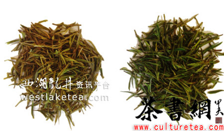 白茶对比:左边老茶颜色枯黄,右边新茶颜色偏绿。