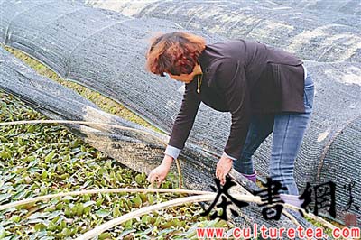 黄正妹带我们参观了她的基地。遮阳布的底下是正在“成长”的小茶苗们,她家的茶苗大概有三四亩,种有水仙、肉桂、奇兰、黄观音、金观音等十几个品种的茶苗。她说,“最近几年茶苗都比较好卖,不同品种的茶苗价格不同,一般市场哪个茶好卖,那相应的茶苗也会畅销,我们也会多育哪个品种的茶苗。”