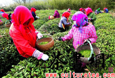 这几天,经过一场春雨的洗礼,后云台山上的茶叶长势越发好了。茶农们抓住这几天春茶价格走俏的时机,放下手中的其他事情,一心扎进茶园抢采雨前茶。宿城山上的茶园梯田,到处能看到茶农们忙碌的身影。有的人家茶园面积大,还要雇人手来帮忙。