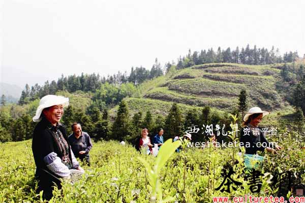 吹树叶唱山歌的周登秀介绍,每天该茶场都有20多位妇女来采茶,人多的时候,一天有50多人采茶,热热闹闹的。平均每天他们的采茶工资有100多元,该公司给他们提供住宿,他们收工时自己做饭吃。