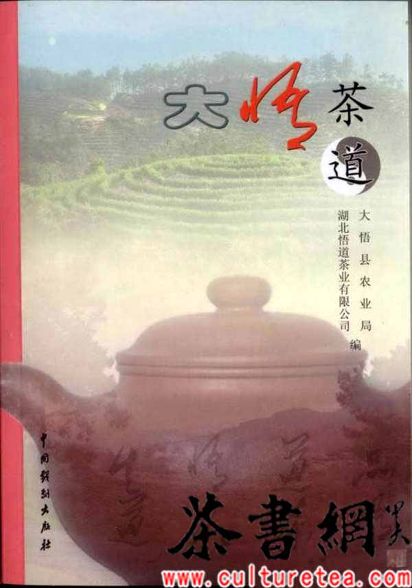《大悟茶道》一书,已由中国戏剧出版社正式出版了。内容分四辑,第一辑“时贤雅韵”,收当代作家、诗人写照悟道茶的诗文;第二辑“获奖作品”,收“悟道茶杯”有奖征文的获奖作品;第三辑“大悟问茶”,介绍了大悟县茶产业的发展之道;第四辑“悟道之窗”,介绍了湖北悟道茶业有限公司的相关情况。该书由高剑主编,中东图文工作室设计封面。