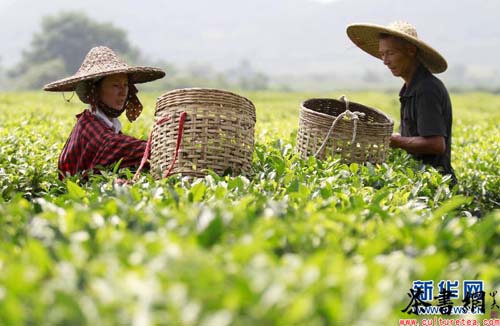 9月17日,在广西柳城县伏虎华侨农场8队的有机茶园里,当地茶农在采摘“白露茶”。白露过后,广西柳州市柳城县辖区内的柳城、伏虎、四塘农场的茶农们抓紧时机采摘“白露茶”,当地万亩茶园里处处可见茶农忙碌的身影。