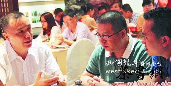 秋茶品鉴会上,茶商交流秋茶销售情况。