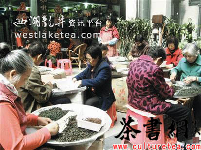 昨日上午,在武昌陆羽茶都内,一家名为安溪铁观音的茶叶店门口,上十位中老年妇女组成的拣茶队,成了茶都内一道特别的景象。每逢有买茶人经过此处,都会忍不住好奇上前询问:“这是今年的新铁观音吗?”随后会捏几颗茶起来闻闻香。记者也因此到店内一问究竟,结果发现,拣茶不仅是制茶时一道必不可少的程序,更是商家的售茶广告。