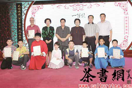 9月14日,由北京市文联、北京曲协主办的“2013北京市少儿曲艺培训成果展示暨第六届全国少儿曲艺比赛北京地区选拔赛”颁奖典礼在老舍茶馆演出大厅隆重举行。中国曲协名誉主席刘兰芳,中国曲协分党组成员、副秘书长曲华江,北京市文联党组副书记刘开阳,北京曲协主席李金斗,艺术家赵玉明、马玉萍、梁厚民、李绪良、张蕴华、崔琦等以及北京市大碗茶文化发展有限公司、北京老舍茶馆董事长尹智君出席颁奖典礼。