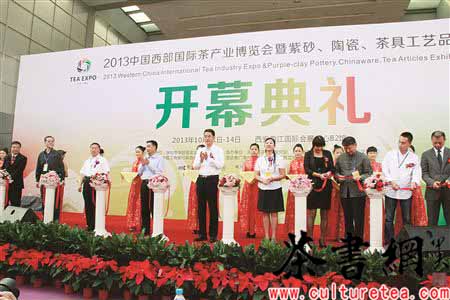 10月11日,由深圳市华巨臣实业有限公司主办的2013中国(西部)国际茶产业博览会暨紫砂、陶瓷、茶具工艺品展在陕西西安曲江国际会展中心拉开序幕。展览面积达10000平方米,共设立国际标准展位500个,成为西安乃至中国西部地区规模最大、最专业的名茶博览会。