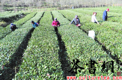 康县阳坝镇大力发展茶产业,目前共有茶园28000亩,投产22000多亩,今年收获茶叶450吨,种茶农户户均收入达到1万元。图为11月28日,油房坝村茶农正在茶园里对茶树进行科学管理。
