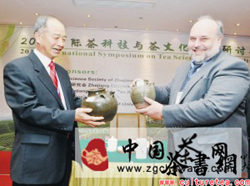 参加2013国际茶科学与茶文化学术研讨会的专家正在观赏民间陶器茶具。昨日,浙江省茶叶学会、浙江大学茶文化与健康研究会、浙江大学茶叶研究所、韩国茶学会、韩国济州大学茶叶产学研合作中心主办的2013国际茶科学与茶文化学术研讨会在嵊州市举行,中国、韩国、德国等7个国家100多位代表进行了现场交流。嵊州越乡龙井、嵊州市茶文化博物馆收藏的剡溪流域陶器茶具也在会上亮相。