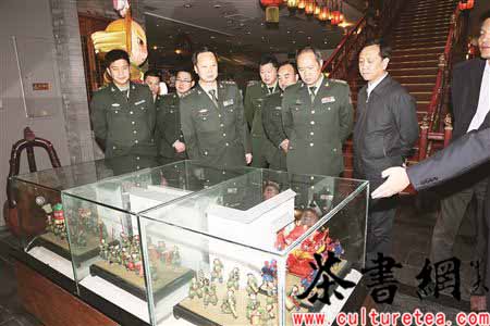在老舍茶馆具有王府风格的艺苑厅,领导与官兵们一同观看了电影《大碗茶》精彩片段。老舍茶馆常务副总经理杨亓玮代表尹智君董事长致欢迎词,介绍了老舍茶馆的发展历程与企业文化,以及“老二分茶摊”、“戏迷乐”京剧票房和老北京传统商业博物馆三大品牌公益项目,同时表示企业愿意搭建平台,让更多的双拥工作体验活动走进老舍茶馆。