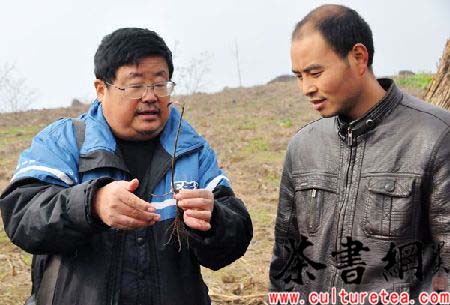 走进种植老鹰茶的田间地头,齐桂年一边俯身仔细查看干枯的茶苗,一边详细讯问老鹰茶的种植方法。通过一番“望、闻、问、切”, 齐桂年开出了种植茶苗的“药方”:坑的大小要在50公分左右,覆盖茶苗的土要细,要夯实,这样利于茶苗尽早生根;种植时,要在茶苗根部周边施好氮肥,这样有利于给树苗增加“营养”;茶苗种好后,要根据天气情况,适时浇好水……