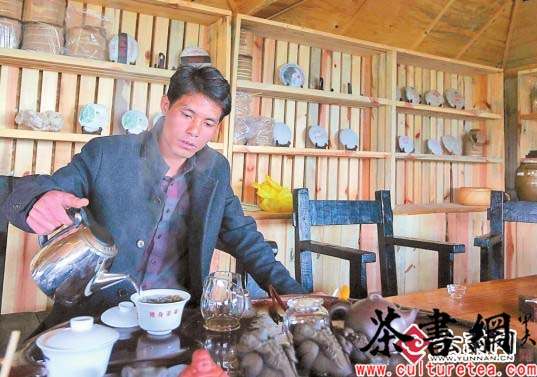 芒景村翁基小组的布朗族小伙张光明,开始冲泡早餐后的第一道生茶,一口下去,提神生津。“接待游客的客栈要抓紧了,制茶的厂房也要尽快搞好,将来申遗成功了,等着我们的事儿还多呢!”张光明一面品茶,一面打理着生意。