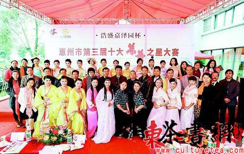 惠州市第三届十大茶艺之星大赛选手和嘉宾合影。