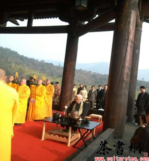 2013年是茶圣陆羽诞辰1280周年。今天,日本最大的茶道流派里千家在长兴大唐贡茶院举行献茶仪式,里千家第15代掌门人千玄宗大宗匠从日本带来心茶,虔诚地献给茶圣陆羽。他在赞美当地景致的同时,希望通过献茶祈福和平。