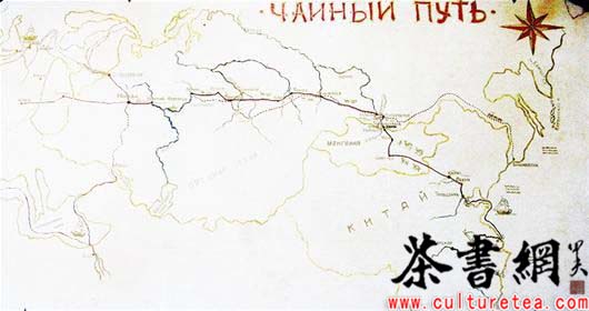 图为:当年茶商所绘万里茶道图,现珍藏于恰克图博物馆,图上标明起点为汉口。