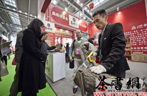 此外,现场各种体验活动,也大受市民的追捧。黑茶龙头白沙溪“撬千两茶一分钟”、久扬茶业“黑茶DIY,免费赠送”等活动吸引来广大市民的积极参与,体验一番或撬或锯千两茶的乐趣,亲身感受力量之茶、生命之茶!记者深深感受到,数字时代,新技术新设备正悄然改变着传统茶行业及会展行业的发展规则与格局;而在时尚、健康、和谐的社会背景下,人们追求的是一种生活方式,一种健康的体验,广大茶企也顺势而动,正在以一种开放的胸襟、广阔的思维、敏锐的视角、创新的胆量,实现新的跨越与突破。