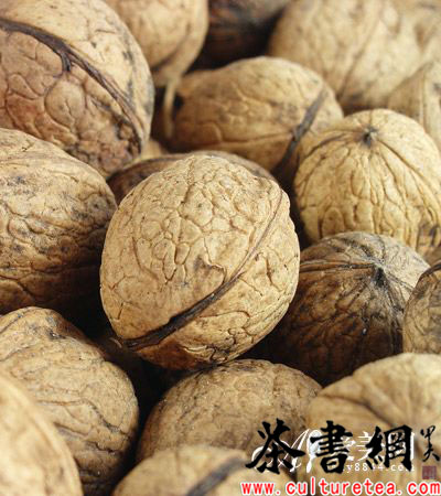【制法】核桃仁碾成粉,与绿茶、白糖一起,用沸水冲泡5分钟。