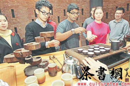 1月10日,美国麻省理工学院访学团学子在天津财经大学学习中国茶艺。参加本次修学游的9名学生是由麻省理工学院从众多符合条件的报名者中选拔而出,他们将在天津财经大学展开为期三周的汉语言、太极拳、书法、茶艺等中国文化体验活动。