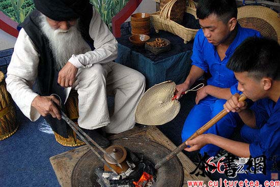 石阡苔茶泡制过程——木炭熏茶