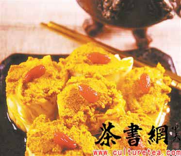 把焯好的菜墩儿趁热装进小瓷坛儿里码整齐了,码一层菜墩儿涂抹上一层芥末糊和白糖,再码第一层菜墩儿,再涂抹上一层芥末糊和白糖……直到摆满多半坛儿,然后把焯菜墩儿用的水晾一晾,打去浮沫儿倒进坛儿里,赶紧把盖子盖好封严实了,外面上层再用小被子裹住。之后把封好的坛子放在屋里暖和的地方捂着,让芥末的辣味儿充分发透了。过个两三天打开,芥末的辣味儿就冲鼻子了。吃的时候把一个个牙黄色的小墩儿整齐地码在盘儿里,点上米醋和香油。吃上一口,甜酸清脆,开窍通气,痛快!吃足了大鱼大肉,解油腻就全靠它了。这道小菜虽说算是素的,但却素得有味儿,素得雅气,算得上是北京特色年菜中的精品。