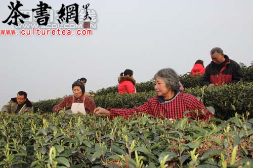 护国镇梅岭村,茶农在忙着采摘第一芽