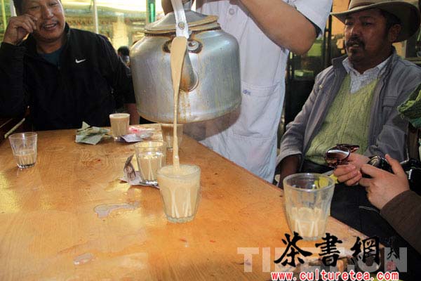 在纳金西路上,有一家名为“格萨尔说唱馆”的甜茶馆,这家甜茶馆与拉萨其他甜茶馆一样,店内没有特别的装修,面积也不是很大,只有几张藏式的桌椅在阳光下静候客人的光临。这里的甜茶价格与其他店里的价格相当,1磅的4元、2磅的10元、3磅的15元、5磅的20元、8磅的25元,点上一壶,就可以在这里晒上一整天的太阳。