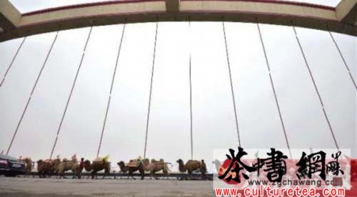 中国茶网资讯:2月16日,107国道信阳茶叶集团,“重走茶叶之路 中国茶都信阳出征仪式”上,百余峰骆驼驮上信阳毛尖,牵驼的内蒙古汉子们饮过壮行酒,踏上北上征途。