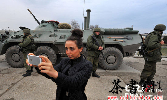 俄军封锁乌克兰军事基地 亲俄民众忙合影送茶(高清组图)
