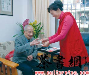 灿烂的阳光穿过玻璃窗,铺在亮堂的客厅里,102岁的中国茶界泰斗张天福倚在沙发上,开始他每天的功课——品茗。厨房里,57岁的女主人张晓红系着围裙,既优雅又麻利地在灶台前忙乎。在福州张府,这对年长的“新人”以如此居家、恬适的方式安排生命中的第二场“蜜月”。