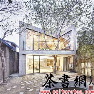 茶室(Tea House)是上海创盟国际设计机构在位于军工路办公区后院对基地上原有的一栋屋顶已经塌掉的仓库房的再建项目。因为受基地和现有的一棵树所限,整个建筑呈现不规则的四边形。朝向院落的一侧被布置成相对公共性的开放空间:一层茶室、二层图书馆,一个小小的三角平台在图书馆前延伸出来,将树木容纳在其中,与建筑融为一体。而背向后院一侧则布置休息室、书房等秘密共间;公共空间与私密空间之间通过一个趣味性的连接空间得以串连,链接空间的是一扭曲的楼梯间,其双曲造型来源于空间几何性的扩展。