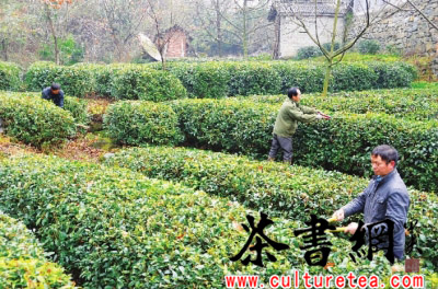 随着天气转暖,康县5万亩茶园进入修剪期,预计今年全县茶叶产量将突破60万公斤。图为康县阳坝镇宋沟村村民正在修剪茶树。
