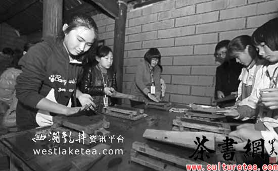 图说:小记者在五店市万应茶文化园制作茶饼。