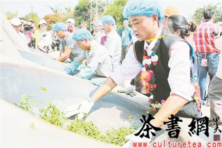 4月10日,第六届“勐海茶王节”在云南勐海县开幕。据了解,为期3天的“茶王节”茶韵沁心。让人耳目一新的茶文化代言人选拔大赛,让人流连忘返的万人品茗活动,傣族、哈尼族、拉祜族、布朗族茶祭祀表演,民族民间民俗茶艺展演,大开眼界的手工制茶大赛,名山名茶评比,“精品普洱勐海茶王”评比,茶艺茶道表演赛,茶文化摄影书画展等活动一一展现在各方宾客眼前。图为手工制茶大赛。蒋念来