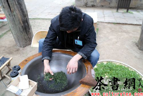 在2014泰山东岳庙会上,茶博会吸引了很多游客,即使刚下过一场雨,茶博会上的游客还是络绎不绝。在记者采访期间,正好有商家正在现场炒茶,炒茶师傅告诉记者,一次炒出来的茶叶不到一两,要炒40分钟左右,一天最多炒1斤。