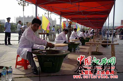 4月19日,来自我省各产茶地的44名炒茶高手齐聚遂川,进行一场炒茶职业技能比赛。这次竞赛中年龄最大的选手是来自遂川县戴家埔乡、58岁的古起生,他从18岁就开始学习手工炒茶。来自资溪县的姚杰是这次竞赛中年龄最小的选手,虽然他只有26岁,却有6年的手工炒茶经验。姚杰说他家祖上三代都会手工炒茶,他愿意做手工炒茶的传承人。