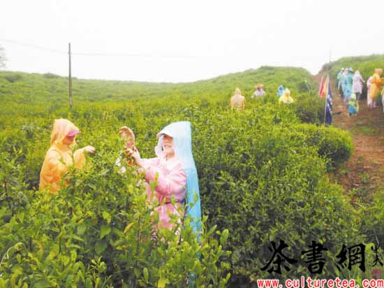 “今天来了这么多人帮忙采茶叶,我们很高兴。”金德中乐得合不拢嘴。