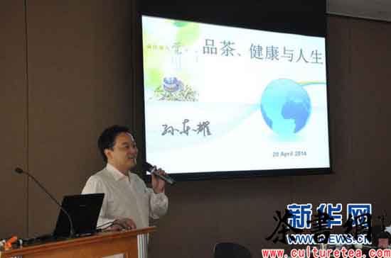 图为孙东耀先生做“品茶、健康与人生”主题讲座