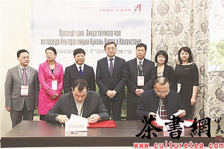 在展会期间,益阳市人民政府副市长谢寿保、湖南省贸易促进委员会副会长黄芳及代表团一行与哈萨克斯坦阿斯塔纳市工商业联合会主席塔季娅娜·伊利力什娜·括诺诺夫那、阿拉木图市工商业联合会主席莫赫·哈尔汗和工商界代表进行了会谈,就如何加强在安化黑茶领域的投资合作进行了广泛深入的沟通。湖南省白沙溪茶厂股份有限公司、湖南省安化道然茶业有限公司、湖南阿香茶果食品有限公司与哈萨克斯坦茶叶中心公司、哈萨克斯坦普利马公司、R。G。公司等企业签订了为期两年的安化黑茶销售代理合作协议。