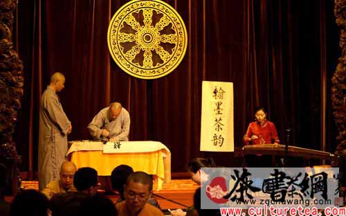 我非茶道中人(平素饮茶也仅为解渴、解乏而已),但在“山间古寺晚钟梵音翰墨茶韵”的空灵之中,也突然有了一点点禅悟,安住当下,体味“听任庭前花开花落,坐看天上云卷云舒”的从容。万物皆合茶意,何事不蕴禅机.禅、乐、茶、墨,水乳交融,六根接六尘,六识皆起,于此中禅悟生命之可贵,佛法之永恒。