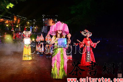 4月29日晚,2014广西(昭平)茶王节暨黄姚旅游文化节开幕,“昭平茶”获授国家地理标志保护产品牌匾,“昭平红”、“昭平绿”获授国家地理标志证明商标牌匾。据了解,“中国名茶之乡”昭平县目前全县茶园面积达到18万亩,现有茶叶加工企业130家。2013年全县生产干茶7569吨,产值8.15亿元。图为昭平少数民族群众在展示当地茶叶产品。