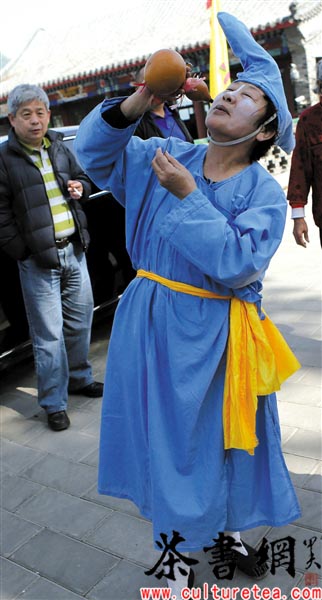 昨日,庙会现场,来自丰台区石榴庄双庙八马艺术团的数十位演员身穿戏服,表演“八马迎春”。“担心堵车,凌晨4点出发来的。”表演结束后,70岁的魏师傅介绍,艺术团共百余人,团员均为石榴庄双庙地区的居民,“今年是马年,所以排练的节目都跟马有关。”魏师傅称,艺术团成员均为中老年人,年龄最大的成员已80岁。
