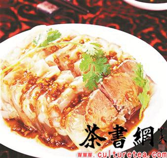 相传三四百年前镇江一个酒铺老板错把做鞭炮的硝当成咸盐腌了肘子,腌得是肉质结实鲜红,肉皮晶莹透明。老板舍不得扔掉,洗净硝粉加上老卤焖煮,不想误打误撞竟然发明出来一道别致的美味,起名叫做“硝肉”。后来人们觉得这个名字有些别扭,于是改用了佳肴的“肴”字,写成了“肴肉”。切成薄片的肴肉卤冻晶莹,肉色绯红,入口精细柔韧,那股异样的甘香不由让人舌根微微一振,再蘸上泡了姜丝的镇江香醋,实乃不可多得的美味。怪不得曾被选做“开国第一宴”的冷菜主碟。