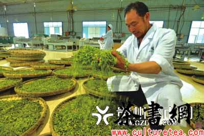 制茶师傅在加工白茶。