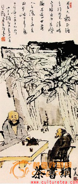 丰富多彩的中国茶文化不乏著名茶画。笔者最近发现,同乡现代国画大师、美术教育家潘天寿先生的国画《旧友晤谈图》,是历代茶画中唯一的指墨画。