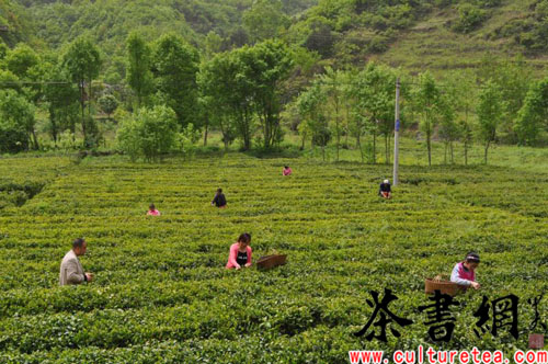 5月3日,两河镇马坝村的茶农在茶园里忙碌着采摘茶叶,康县5万多亩茶叶目前进入采摘高峰期。