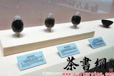 市博物馆内展示的福州名茶,从左至右依次为鼓山半岩茶、福州茉莉花茶、闽侯方山露芽茶。