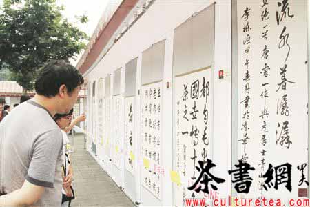 文峰塔下的百名将军与百名艺术家公益书画作品展做足文化气息,吸引众多市民围观。书画作品以都匀毛尖茶为主题,展示了将军们与艺术家们刚柔并济的文化风格,孕育着他们对茶文化的理解,以及对都匀毛尖茶的寄予,从文化角度提升都匀毛尖茶的品牌宣传。
