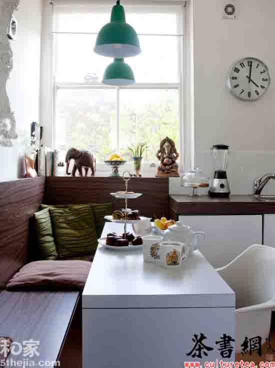 居住人对家的要求极简单也极复杂:说简单,是要求空间里不要刻意的雕饰;说复杂,即是要求在简单中表现出不凡的品位。案例中,似乎无心地划出了一个大约4平方米的茶室空间,其实却暗藏玄机:茶室乃阳台改建而成,阳光透过白色窗帘均匀地洒在茶具上,发出典雅的光泽。