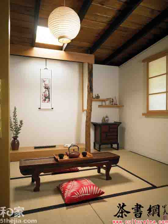 清幽的绿茶,用来形容这间日式榻榻米十分适宜。木材的选用,室外的自然绿植巧露一角,温暖且明媚的幽静的日式禅意扑面而来。只是在墙面一角安置了小巧的茶台,团坐的气势聚合了品茶氛围,墙面挂画更是情趣之笔。和式的典型代表就是流行日剧中的一个场景:一个空明的房间,铺以实木地板,再配以原木矮桌和舒适的坐垫,墙边悬挂书画,桌上摆放全套茶具,空间显得简洁大方。和式大都采用格子图案作装饰,茶桌上铺放的一般为洁净素淡的格子桌布,架上一般也只放一盏简简单单的白色纸灯。